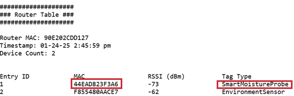 Obtain the MAC ID for the Moisture Probe: