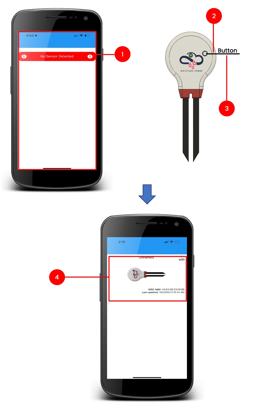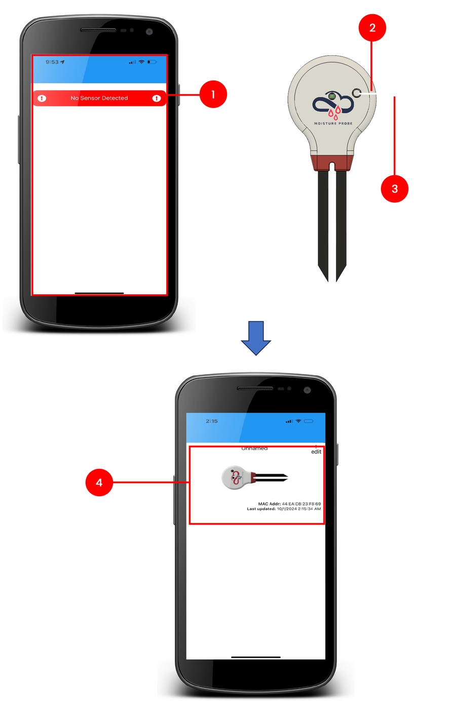 This guide will walk you through using the MantisEDU app to get a moisture reading.